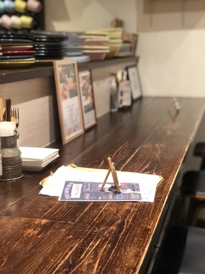 カウンターのお席も広めで可愛いお皿を眺めながらゆっくりお過ごし頂けますよ。