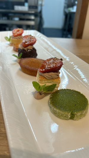 お好きなパフェとフレーバーティー、気まぐれ小さなデザートと当店で販売している焼き菓子を1つ。