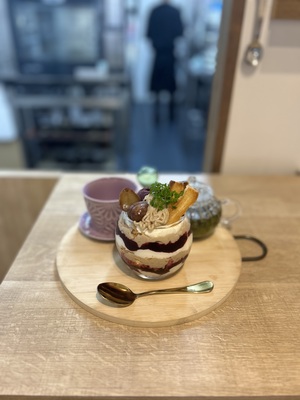 本日より毎年人気のモンブランカシスのパフェがスタート致しました。