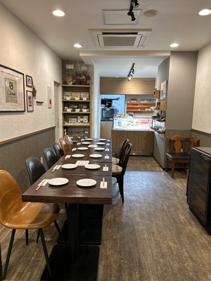 Okadaはお食事、デザート、お菓子と3店舗に分けてお店を営業しておりますが、どのお店も18:00以降、夜のお時間はdiningが満席の場合に、boutique、Tearoomともに、コース料理にてディナーをご案内しております。