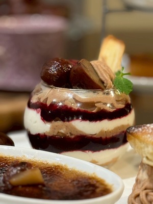 モンブランカシスのパフェは例年12月末頃までのご提供です。栗好きなお客様、ぜひご来店お待ちしております!