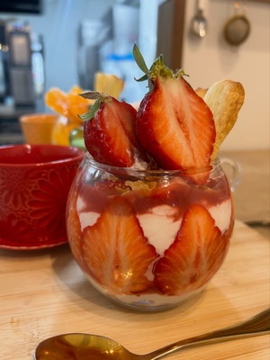 大粒のあまおうDXを入荷致しましたので、福岡県産のあまおうを使用したあまおうパフェもご用意致しました。
